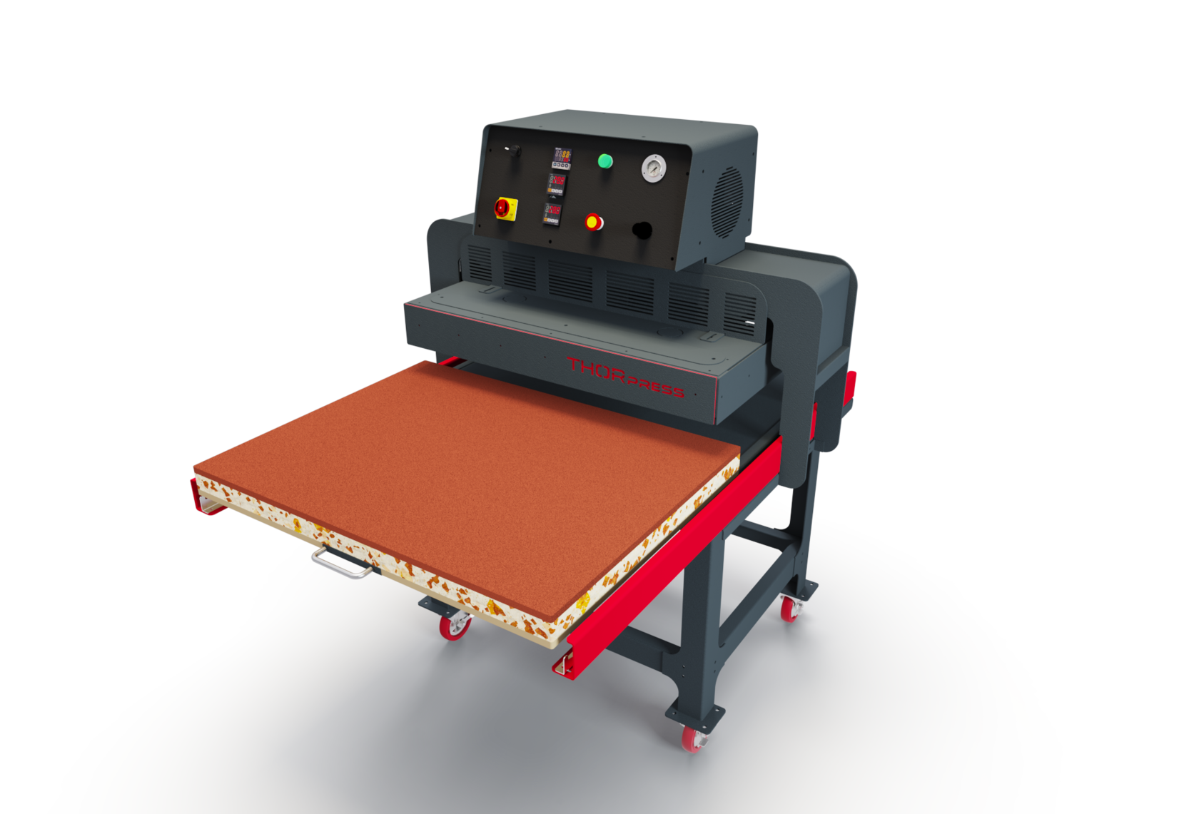 Обновленный широкофрматный термопресс с рабочей зоной 90 х 70 см THOR 97 Power. Позволяет проводить такие операции, как сублимация по ткани, закрепление плёнки и DTF-печать.